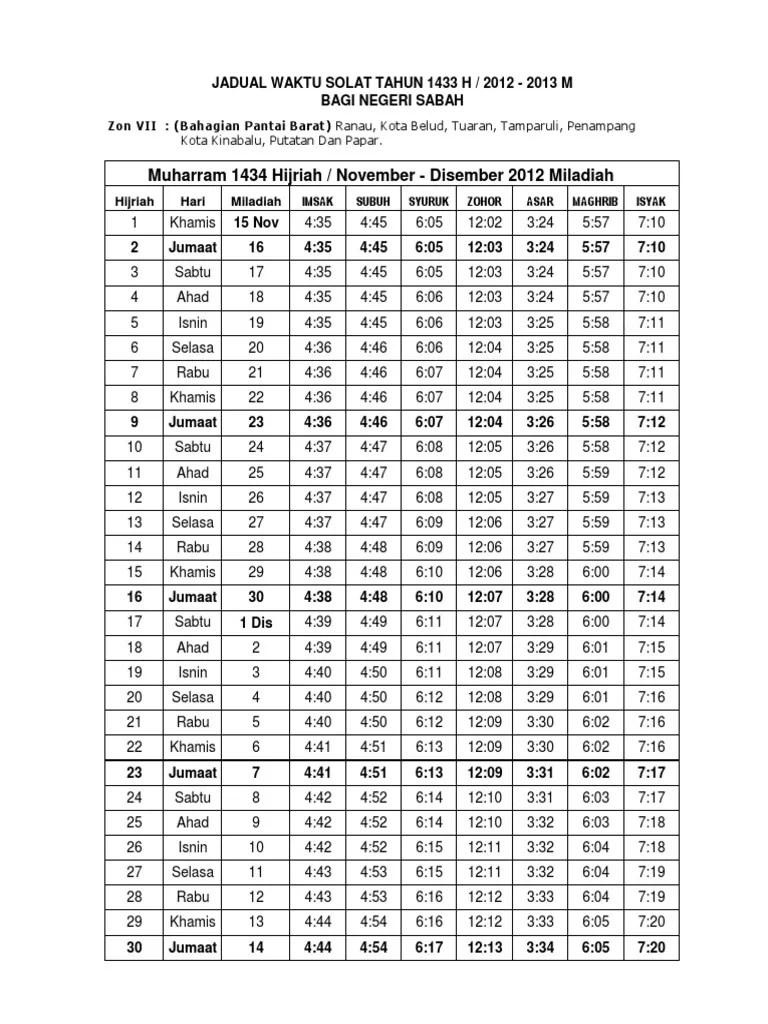 Xls Jadual Waktu Solat 1437 Seluruh Sabah Pusat Islam Ums Academia Edu